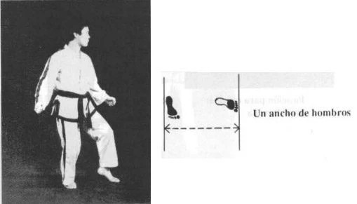 Esta sirve como posición preparatoria para patear de lado o hacia atrás, aunque es frecuentemente usadapara técnicas de defensa. Cuando se para sobre el pie derecho se llama posición en pierna flexionadaderecha y viceversa. Se realiza con enfrentamiento total o parcial.